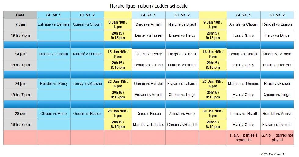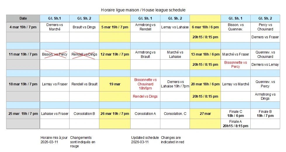Règlements de la ligue maison 2025/2026