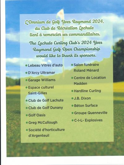 Le 22 juin dernier s'est tenu la 36e édition de l'Omnium Yves Raymond, notre tournoi de golf annuel, au Club de golf à l'Oasis avec plus de 80 joueurs présents pour l'occasion. Lors de cette journée, nous avions droit avant le départ, à un succulent brunch suivi d'un Vegas